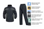 La chaqueta cuenta con cuello alto protector, cierre frontal cubierto que ayuda a evitar filtraciones de agua y detalles reflectivos que mejoran la visibilidad. El pantalón posee cintura elástica que facilita el ajuste al cuerpo y permite colocarlo rápidamente cuando empieza la lluvia. Ideal para uso diario, viajes, trabajo o trayectos largos en motocicleta.