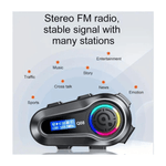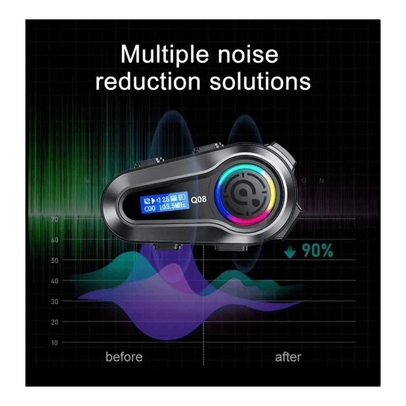 Intercomunicador Auriculares Multimedia Bluetooth Para Casco Moto Impermeable Q08 - Radio Fm Auriculares Bluetooth multifuncionales para motocicleta: Los auriculares de intercomunicación para casco adoptan la tecnología Bluetooth 5.3, que garantiza que los auriculares exteriores tengan una alta compatibilidad y estabilidad. Te permiten hacer llamadas manos libres, disfrutar de la música, escuchar guía de voz GPS, intercomunicador conveniente y acceso al asistente digital activado por voz, etc. Altavoces de casco de intercomunicación bidireccional : la función de intercomunicación del altavoz de casco permite que 2 ciclistas hablen y compartan la experiencia de conducción en un rango de intercomunicador de 1KMlo que te permite a ti y a tu amigo disfrutar del viaje de forma segura y feliz. Estéreo de alta calidad y cancelación de ruido: Con estos auriculares Bluetooth escucharás audio y sonido de alta calidad en música y llamadas telefónicas. Tecnología de cancelación de ruido para reducir al máximo el ruido de fondo, por lo que puedes dejar que la otra parte escuche tu voz claramente cuando conduces a alta velocidad. IPX6 impermeable y batería de gran capacidad: Los auriculares Bluetooth cuentan con impermeabilidad IPX6 para hacer frente a condiciones climáticas adversas como polvo, lluvia, tormenta, nieve y baja temperatura. Con batería de gran capacidad, puedes disfrutar del paseo al aire libre durante mucho tiempo sin problemas de carga. Adecuado para todos los cascos: auriculares Bluetooth inalámbricos ultrafinos adecuados para todos los cascos, no causarán que aprietes tus orejas, lo que te da una experiencia de uso cómoda. Especificaciones Intercomunicador Q08 Voz de alta fidelidad Bluetooth 5.3 Bateria de alta capacidad Reproductor de musica IPX6 resistencia al agua Microfono de alta fidelidad Compatible con iOS y Android Reduccion de ruido Lo que obtienes en la compra 1 x Intercomunicador Q08 1 x Micrófono 1 x Velcros adhesivos 1 x Cables de conexión 1 x Cable cargadorv