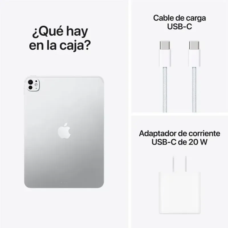 Incluye: iPad Pro, Cable de carga y cargador USB-C. Accesorios adicionales se venden por separado.