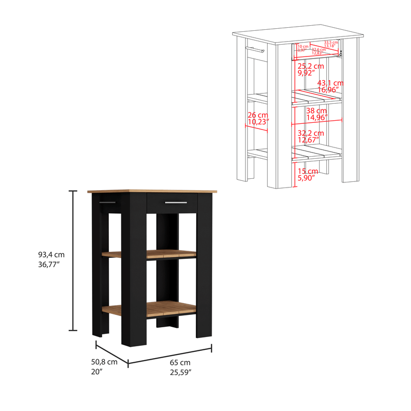 Isla de cocina con toallero, un cajon, dos entrepaños, diseño country farm con medidas de: ALTO 93,4 ANCHO 65 FONDO 50