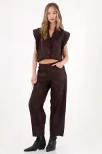 Combínalo con camisas neutras o tejidos livianos para dejar que el color y la textura sean protagonistas. Ideal con botas o tacones para destacar su caída estructurada y su pretina marcada.