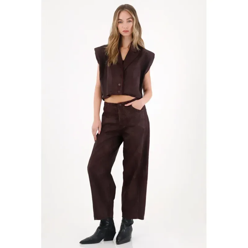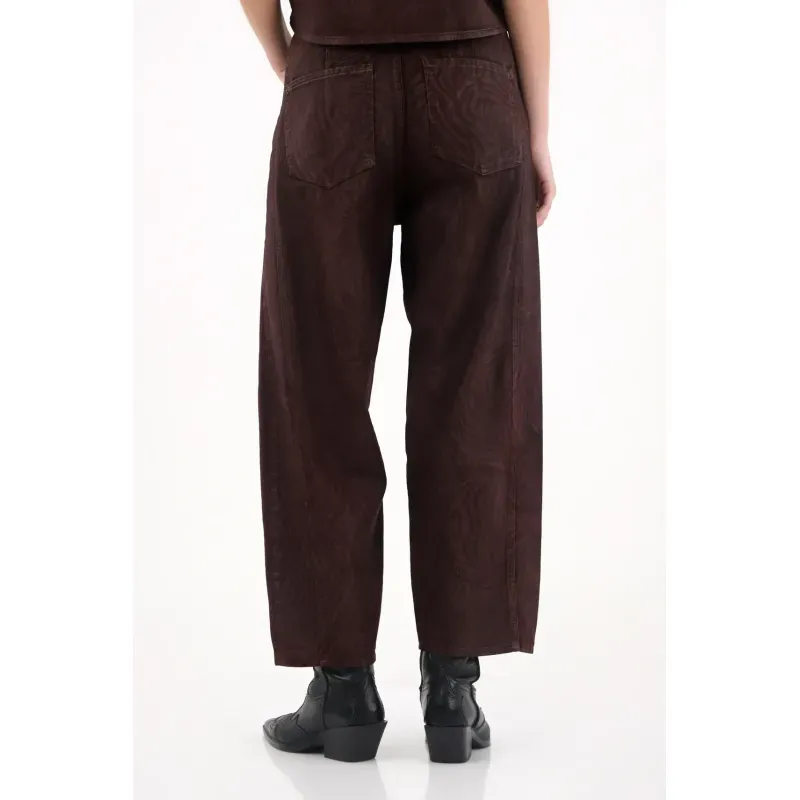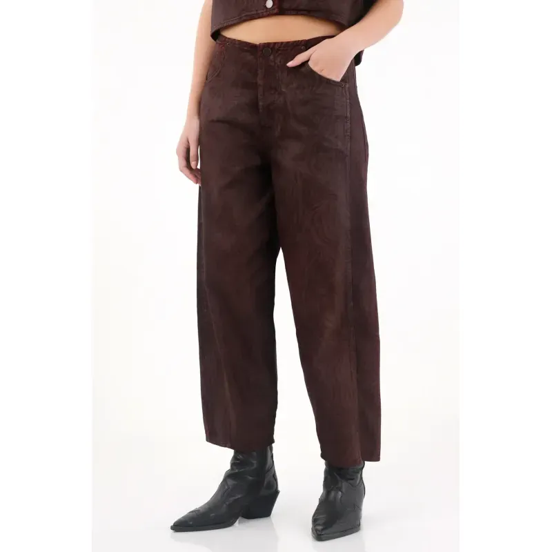 Este jean Horseshoe en efecto resina vinotinto eleva la tendencia del street style con una energía poderosa y vanguardista. Su estampado cebra y la silueta amplia crean un balance entre fuerza y movimiento, logrando un look tan atrevido como elegante.
