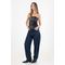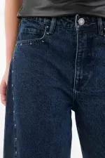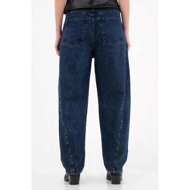 Este mom jean captura la nostalgia de los noventa con un giro moderno: taches que iluminan los cortes delanteros y un azul medio que se adapta a cualquier estilo. Perfecto para looks relajados con camisetas básicas o para elevarlo con una camisa romántica y botas de cuero.