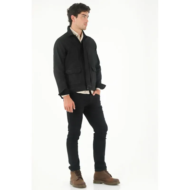 Este jean para hombre cuenta con una silueta Nudy que se caracteriza por su ajuste moderno, pensado para quienes buscan un pantalón que acompañe el cuerpo sin perder comodidad. Su diseño en denim negro, completamente liso, sin desgastes ni apliques, ofrece una apariencia sofisticada y minimalista, ideal para crear looks pulidos desde el día hasta la noche. Los cinco bolsillos tradicionales y la pretina con pasadores mantienen la esencia auténtica del denim, asegurando funcionalidad y estilo atemporal.