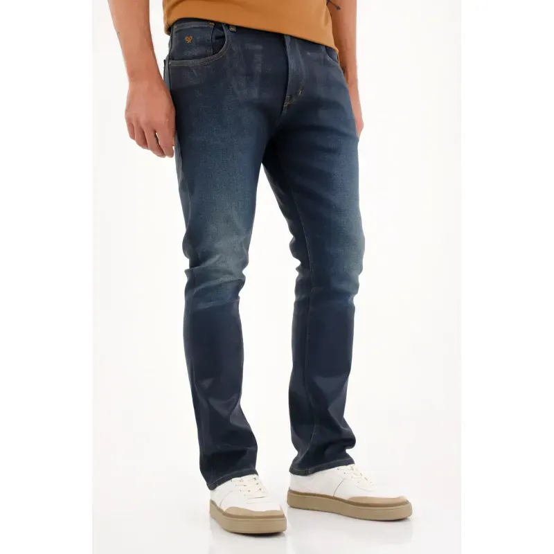 Este jean Nudy en tono medio destaca por su acabado con efecto encerado, que le da un aire sofisticado y actual. Su diseño de cinco bolsillos con ajuste de botón y cierre mantiene la practicidad al poner y quitar, mientras que el desgaste en el delantero aporta carácter y vibras urbanas. El bordado de raqueta en la relojera es ese detalle icónico que resalta nuestro ADN.