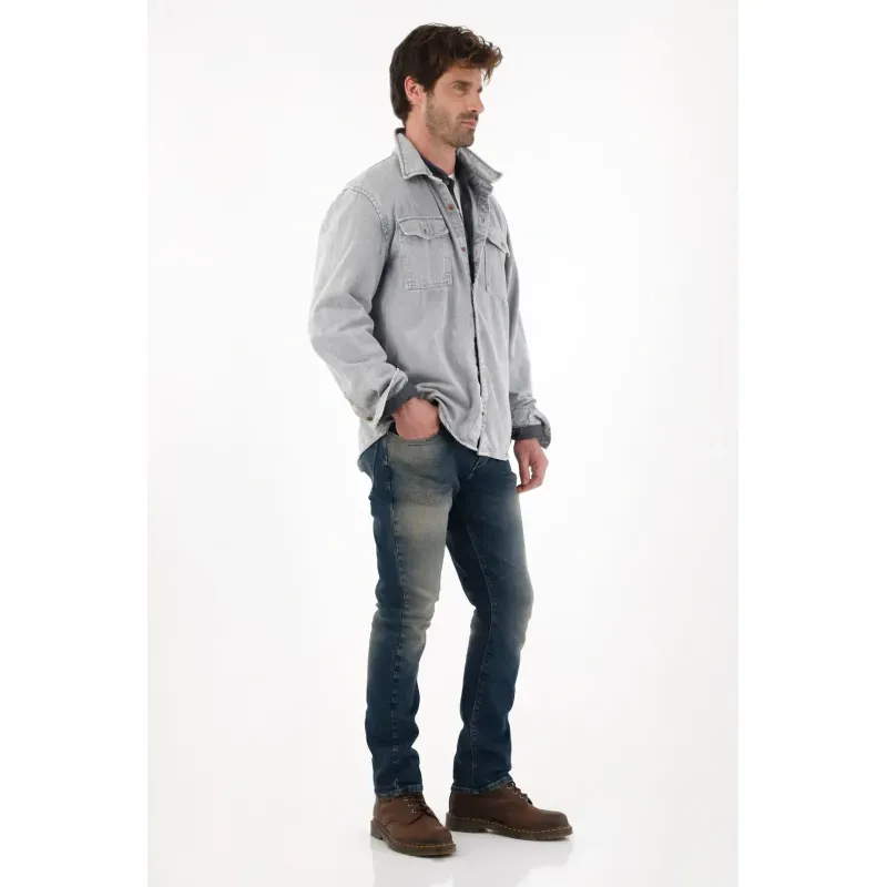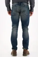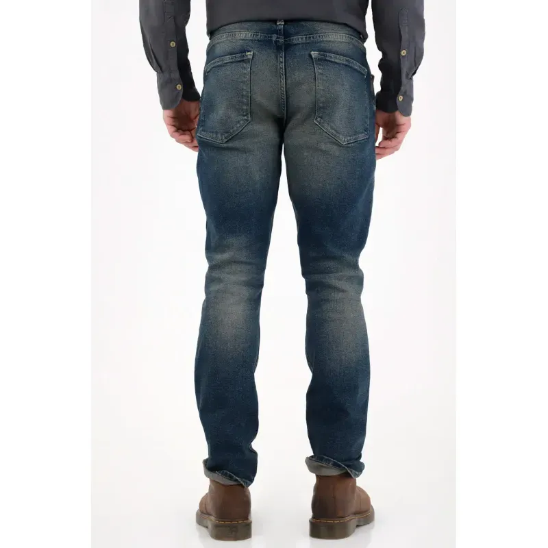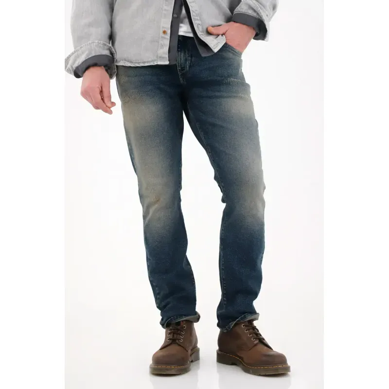La silueta nudy aporta un aire relajado y contemporáneo, mientras el desgaste fuerte y los bigotes le suman un acabado urbano y lleno de carácter.