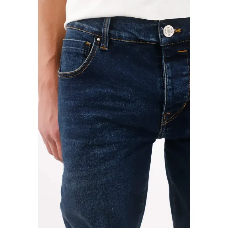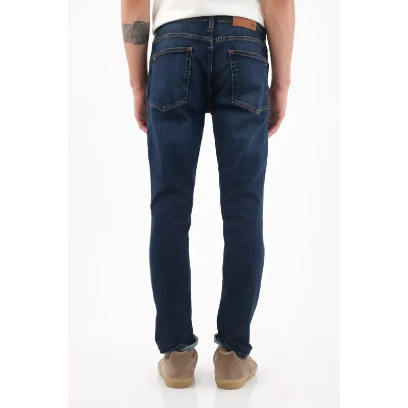 Índigo profundo que dibuja la silueta. Este jean skinny para hombre apuesta por un azul índigo oscuro con lavado suave que mantiene la vibra limpia y urbana. Las costuras en contraste subrayan las líneas y aportan carácter sin exceso. La pretina con pasadores ordena la cintura y acompaña la pierna estrecha para un perfil definido. La mezcla de 68% algodón, 30% poliéster y 2% elastano se siente actual y cómoda para el movimiento de todos los días. Ideal si buscas un jean skinny hombre en índigo que funcione de mañana a noche.