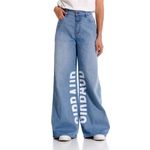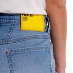 Jean tiro alto cinco bolsillos. Efecto lavado azul medio. Estampado en delantero