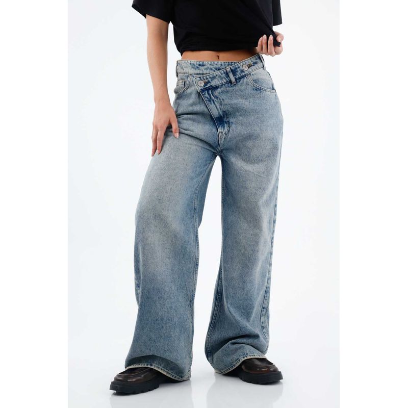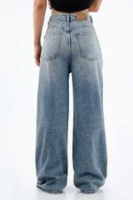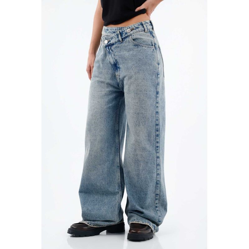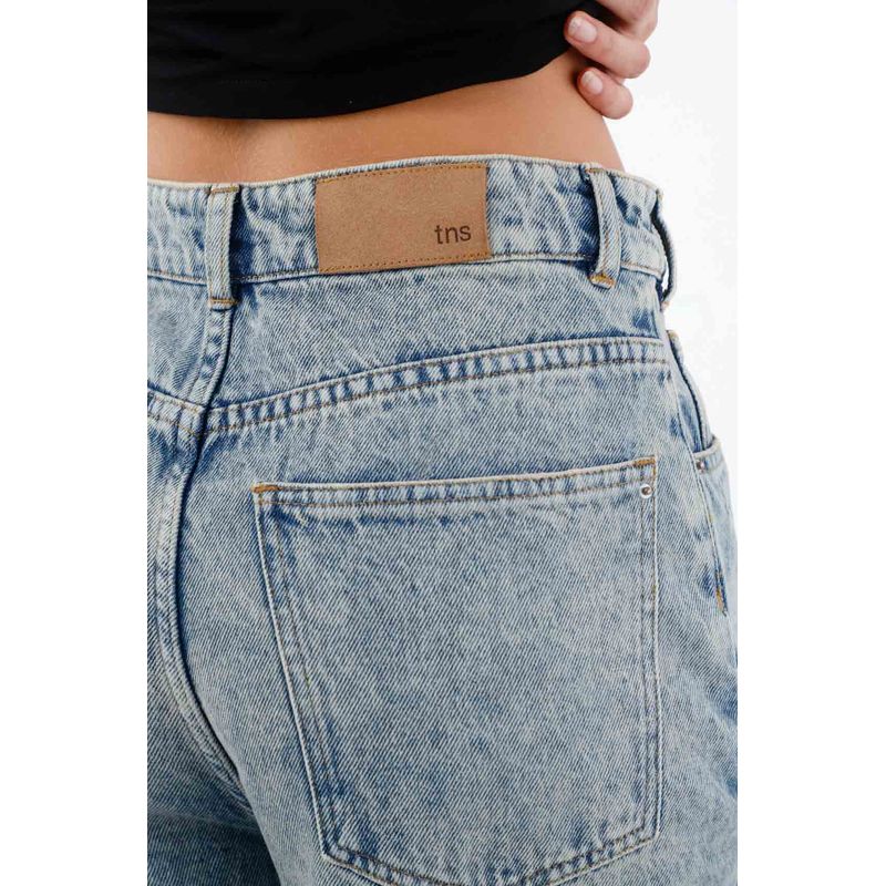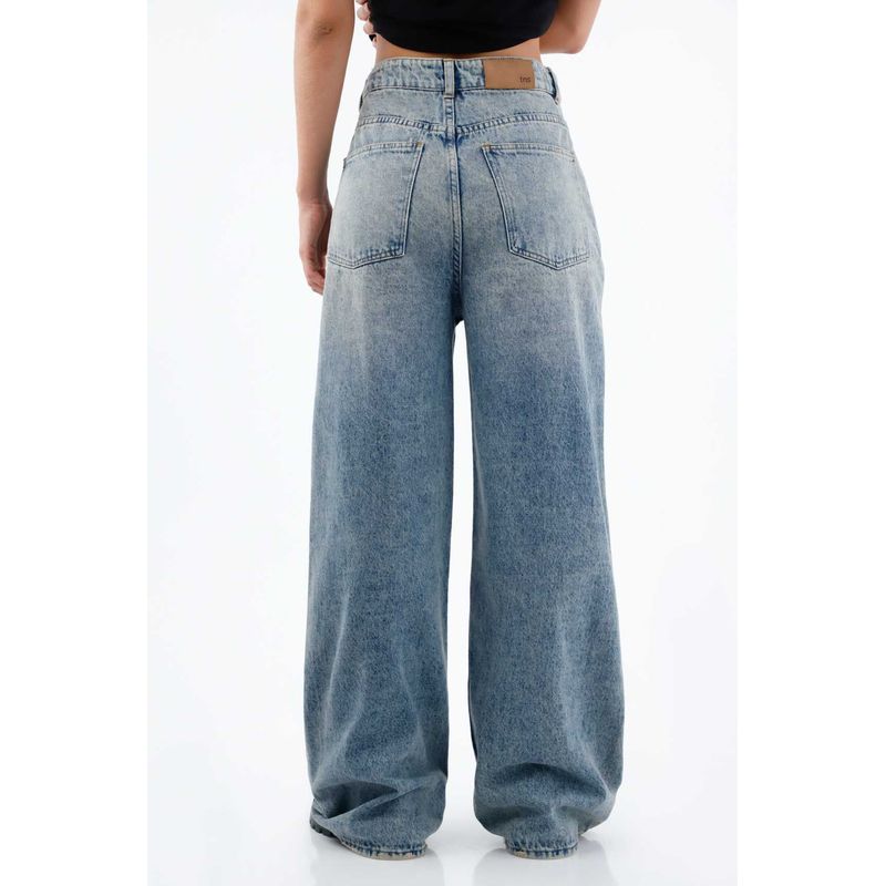 Pierna ancha, cintura alta y actitud XL. Este jean TNS para mujer, en denim de algodón 100% plano pesado, aporta estructura y una caída amplia con movimiento. El tiro alto con pretina y pasadores enmarca la cintura y estiliza el torso; los bolsillos traseros clásicos y el parche posterior TNS sellan el carácter urbano. El azul con lavado vintage suaviza el tono y suma aires retro, mientras el largo extendido y la pierna extra ancha crean un volumen contemporáneo que se nota en cada paso.
