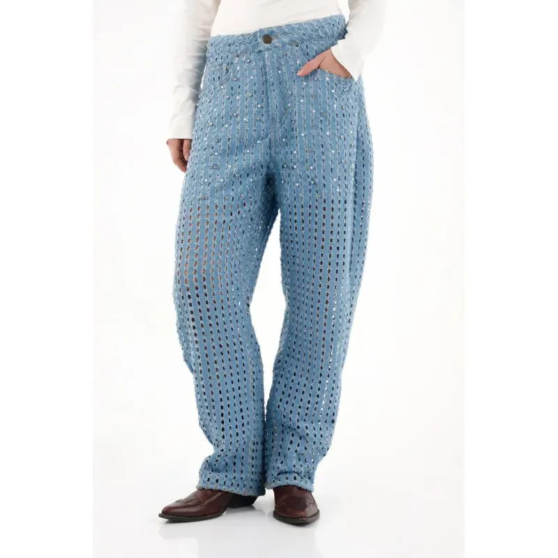 Jean para mujer tennis, jeans horse shoe plano pesado cintura con pretina. color: azul. hecho en material total: algodon 100%