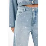 Una silueta clásica que ahora se atreve a sumar brillo para que tus looks nunca pasen desapercibidos y sean siempre tan icónicos como tú. Perfecto para llevar con camisas oversize o crop tops clásicos, este jean juega entre lo básico y lo glam, elevando tu estilo urbano sin esfuerzo.