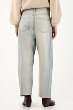 Confeccionado en denim de lavado medio con efecto resinado que aporta textura y carácter. Silueta recta, tiro bajo y detalles de pretina inclinada que favorecen la figura.