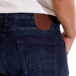 Jean tiro medio con bolsillos en X en delantero. Efecto lavado azul medio. Fit regular bota recta. Cierre frontal con cremallera y botón metálico.