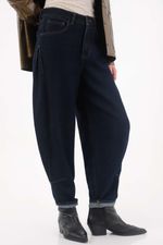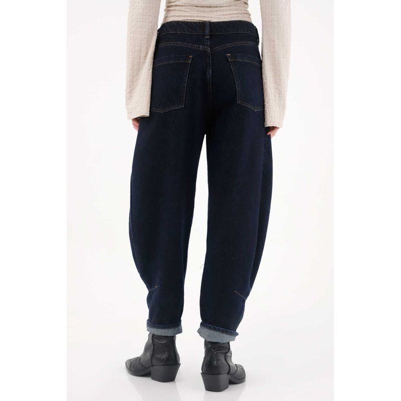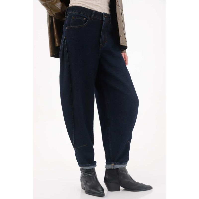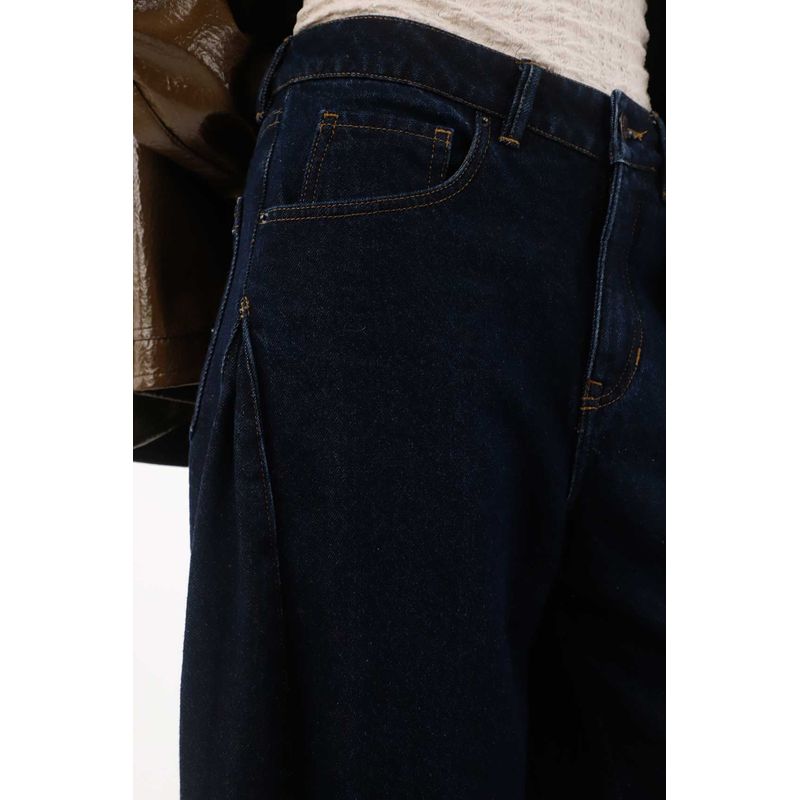 Confeccionado en denim 100% algodón, de tono oscuro, con un prense grande en el costado que añade detalle sofisticado y moderno, garantizando comodidad y estilo urbano en un solo jean.