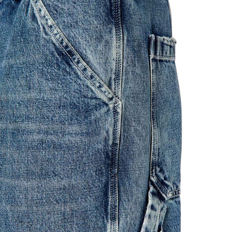 Modelo holgado con cintura media y corte recto. Mediante la actualización del modelo clásico de carpintero, el jean presenta bolsillos utility y un anillo para martillo. El tejido está fabricado con un 20% de cáñamo, un cultivo de bajo impacto que no requiere pesticidas ni fertilizantes, y necesita poca agua para crecer. El modelo viste una talla 31 y mide 182 cm 80%Algodón 20%Cáñamo País origen: Vietnam
