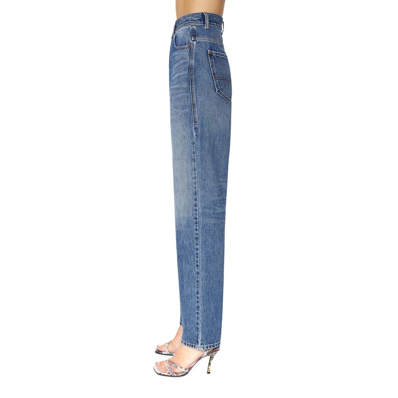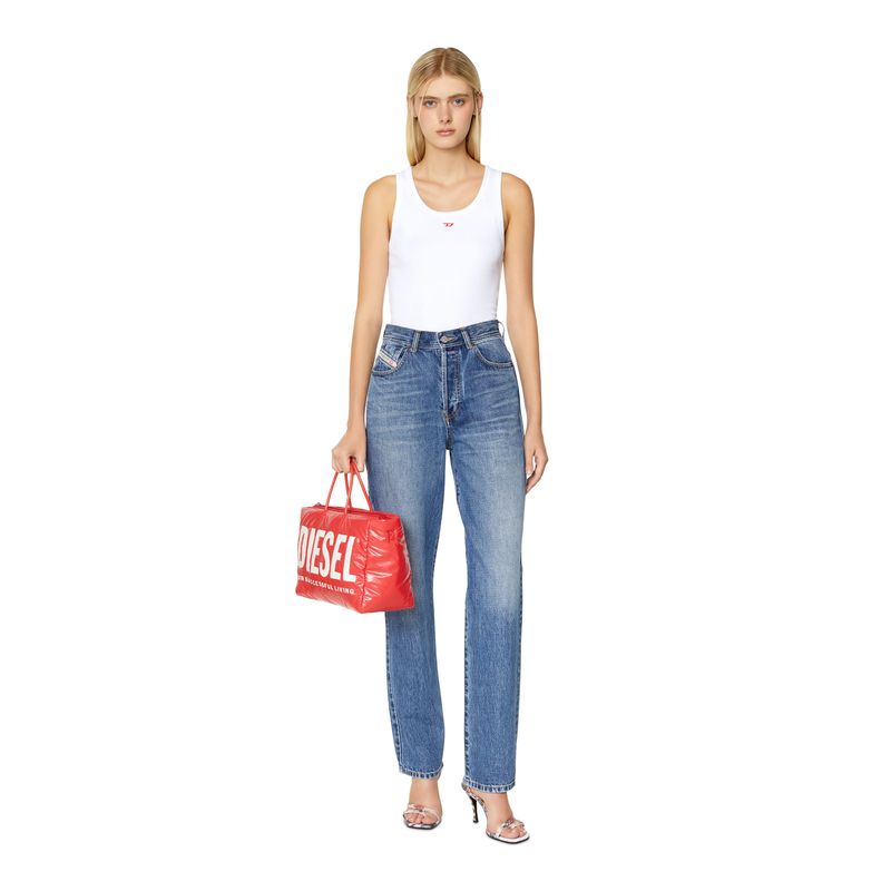 Modelo recto con cintura alta. expresa un aire rockero, y sus influencias auténticas incluyen una silueta esencial y una bragueta con botón.