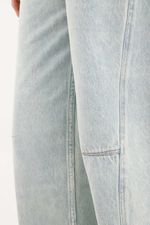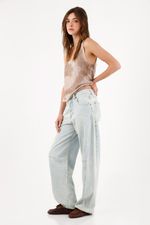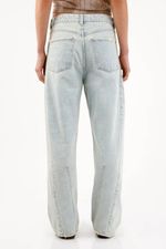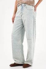 Líneas que mueven tu look. Este jean wide leg en 100% algodón llega en un azul claro fresco que deja que el volumen hable. Las costuras paneladas al frente, con un corte sutil a la altura de la rodilla, dibujan una vertical limpia que estiliza y aporta un guiño utilitario. La pierna amplia cae recta para un movimiento cómodo todo el día, mientras la pretina clásica con botón metálico mantiene el look pulido y sin esfuerzo.