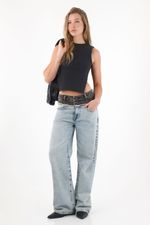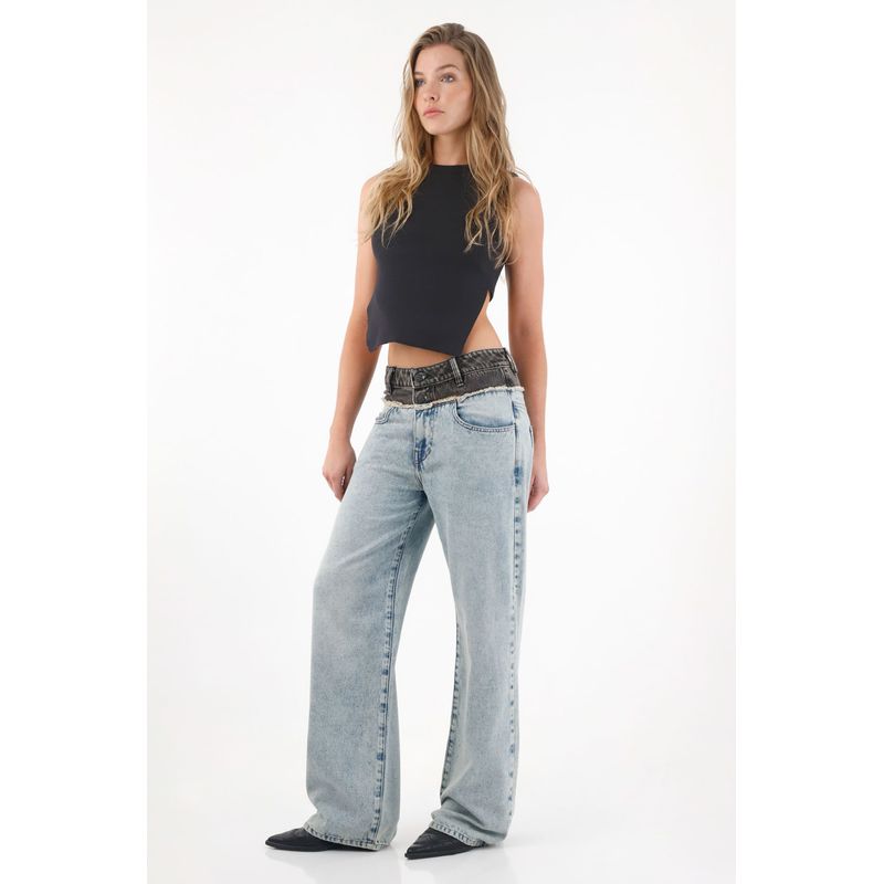 ¡Para una vibra cool y urbana! Este jean Wide Leg es todo lo que tu guardarropa necesita, de tiro alto para resaltar tu silueta y con detalles desflecados en la pretina para un toque único.