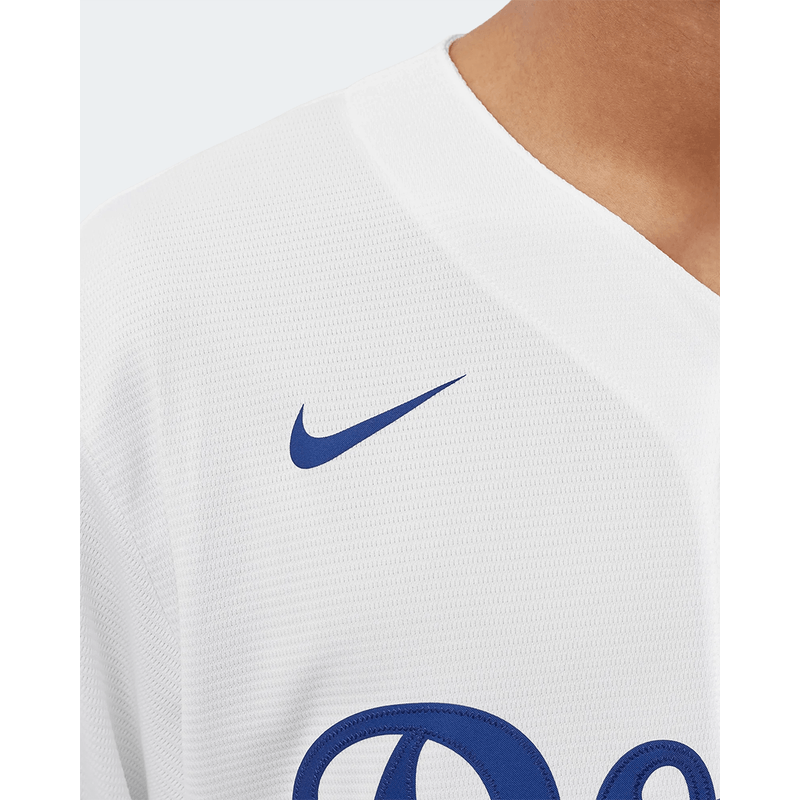 La JERSEY NIKE DODGERS es la camiseta oficial de la MLB que representa a Los Angeles Dodgers, fabricada bajo licencia por Nike. Esta prenda es un símbolo de la herencia del béisbol y de la cultura deportiva de Los Ángeles