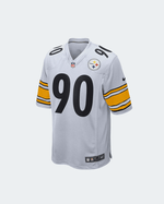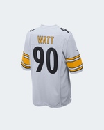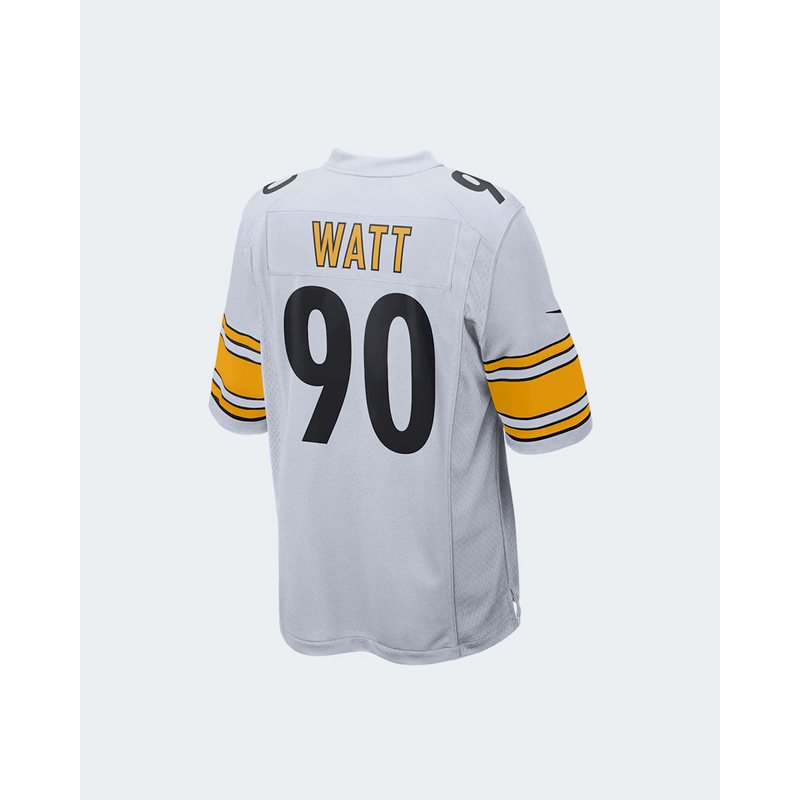La JERSEY NIKE PITTSBURGH STEELERS T.J. WATT es la camiseta oficial de la NFL que representa al aclamado linebacker defensivo T.J. Watt de los Pittsburgh Steelers. Fabricada por Nike, esta prenda rinde homenaje a uno de los jugadores más dominantes de la liga.