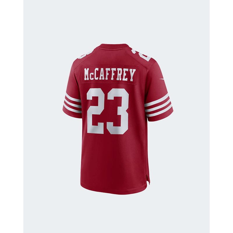 La JERSEY NIKE SAN FRANCISCO 49ERS MCCAFFREY es la camiseta oficial de la NFL que representa al running back estelar de los San Francisco 49ers, Christian McCaffrey. Esta prenda, producida por Nike como socio oficial de la NFL, permite a los aficionados mostrar su apoyo a uno de los jugadores más dinámicos de la liga con una pieza de indumentaria auténtica.