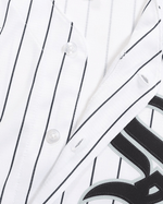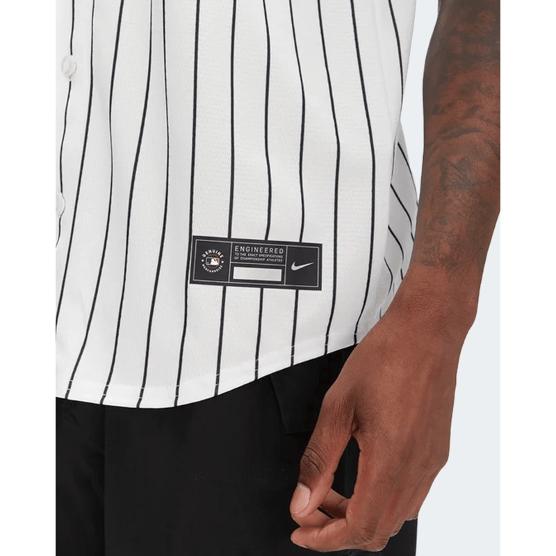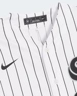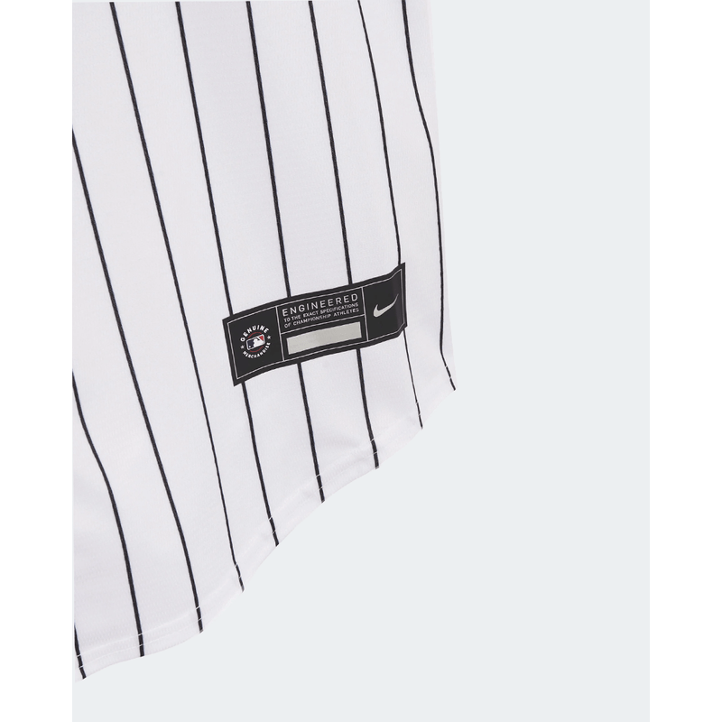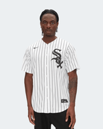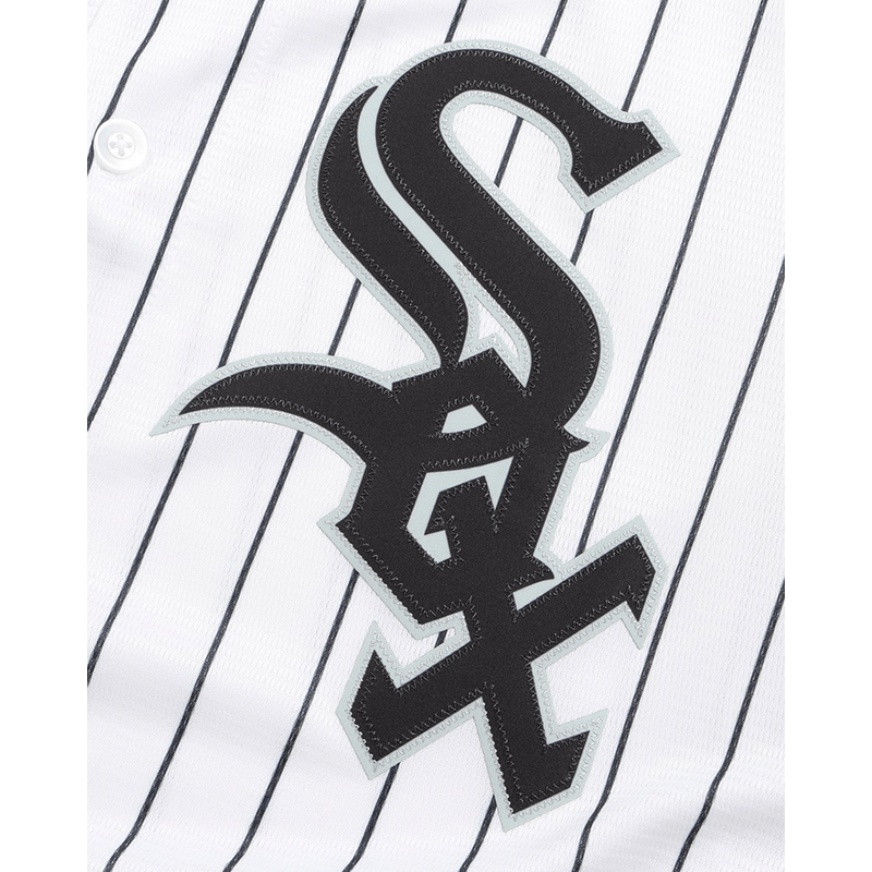 La JERSEY NIKE WHITE SOX es la camiseta oficial de la MLB que representa a los Chicago White Sox, destacando por su diseño monocromático y su estética clásica. Fabricada por Nike, esta prenda se caracteriza por el uso de los colores negro, blanco y gris en un diseño atemporal.