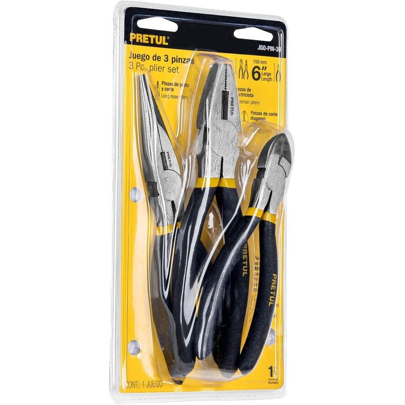 ELECTRODOMESTICOSFerreteriaKit de herramientasJuego de 3 pinzas 2 de 6" y 1 de 8" mangos de pvc Pretul