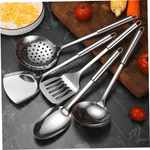 Equipa tu cocina con este completo set de 6 utensilios fabricados en acero inoxidable de alta calidad, resistentes al calor, la corrosión y el uso diario. Su diseño elegante y funcional los hace ideales para cualquier tipo de cocina.