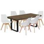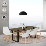 Comedor con pedestal cuadrado en tubo 2 x2 pulgadas en calibre 18 metálico con acabado en pintura electrostática negra. superficie en madecor color Beyota de 30mm de grosor. Superficie en aglomerado con enchape flexible. Silla milano tapizada con estructura en polipropileno, Asiento Acolchado. Patas: Madera, Acabado Roble. llegan para darle un estilo de elegancia y estilo a tus espacios, ideal para ofrecerte un buen confort y así darles un ambiente nuevo y llamativo a tus espacios.