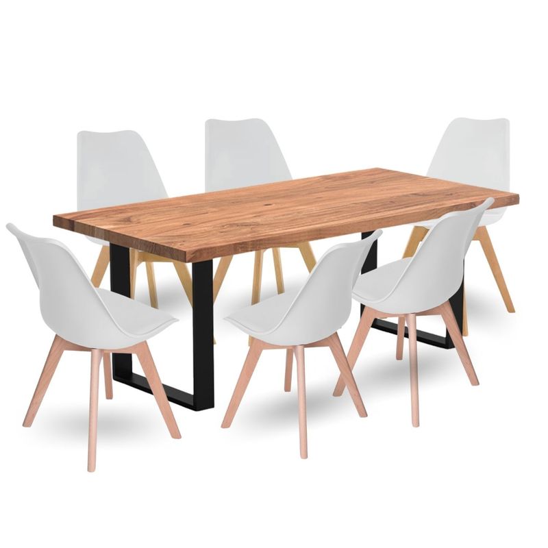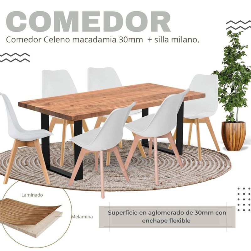 Juego de Comedor Celeno macadamia con 6 Sillas Milano blanco