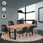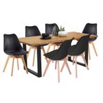 Comedor con pedestal cuadrado en tubo 2 x2 pulgadas en calibre 18 metálico con acabado en pintura electrostática negra. superficie en madecor color Beyota de 30mm de grosor. Superficie en aglomerado con enchape flexible. Silla milano tapizada con estructura en polipropileno, Asiento Acolchado. Patas: Madera, Acabado Roble. llegan para darle un estilo de elegancia y estilo a tus espacios, ideal para ofrecerte un buen confort y así darles un ambiente nuevo y llamativo a tus espacios.