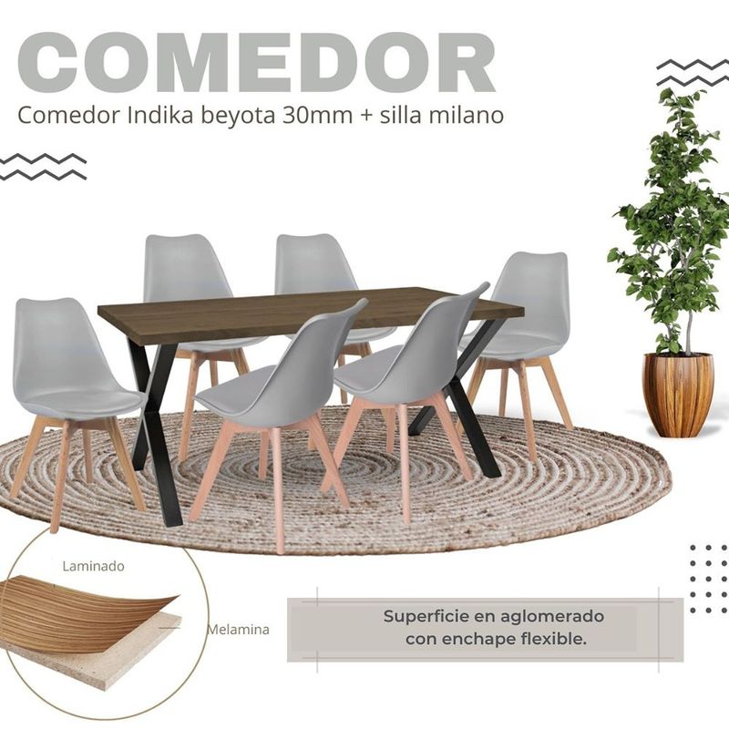 MUEBLESComedorJuego de Comedor Indika beyota con 6 Sillas Milano gris