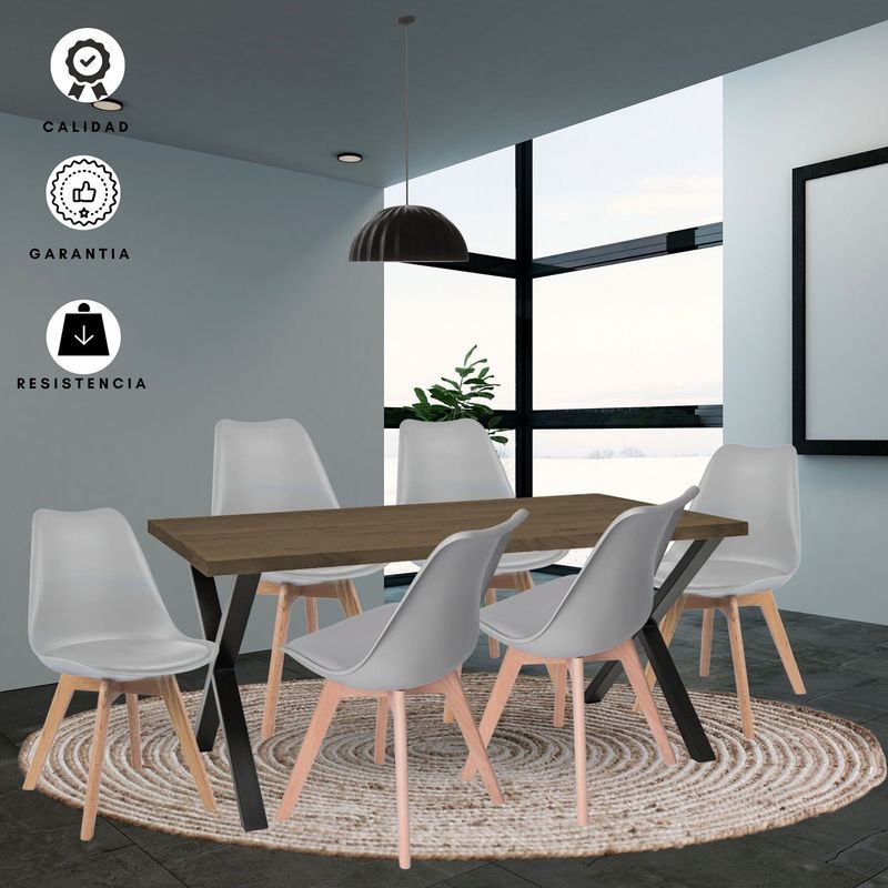 Juego de Comedor Indika beyota con 6 Sillas Milano gris