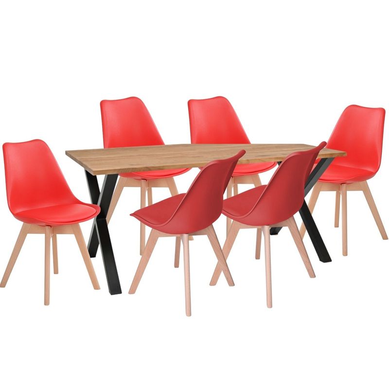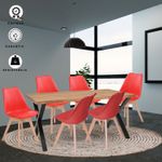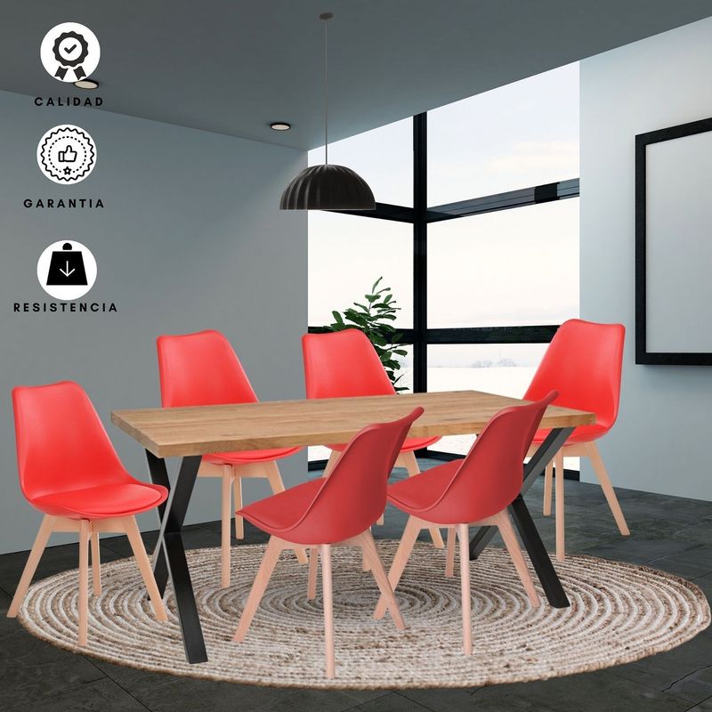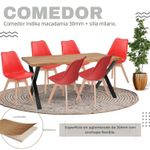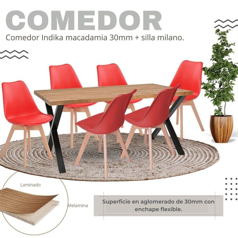 Comedor con pedestal cuadrado en tubo 2 x2 pulgadas en calibre 18 metálico con acabado en pintura electrostática negra. superficie en madecor color Beyota de 30mm de grosor. Superficie en aglomerado con enchape flexible. Silla milano tapizada con estructura en polipropileno, Asiento Acolchado. Patas: Madera, Acabado Roble. llegan para darle un estilo de elegancia y estilo a tus espacios, ideal para ofrecerte un buen confort y así darles un ambiente nuevo y llamativo a tus espacios.