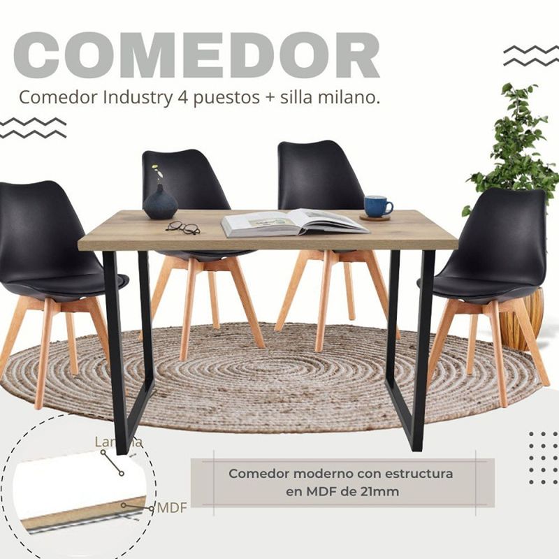 Juego de Comedor Industry con 4 Sillas Milano negra