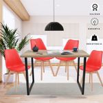 Set de Comedor industry con pedestal cuadrado con 4 sillas milano conforman un conjunto elegante y confortable para tu espacio. La mesa presenta un diseño industrial con un acabado negro y una superficie en madecor color arena, mientras que las sillas añaden un toque moderno con su estructura de polipropileno y patas de madera con acabado de roble. Este conjunto es perfecto para crear un ambiente nuevo y llamativo en tus espacios, a la vez que garantiza el confort en tus reuniones y comidas.