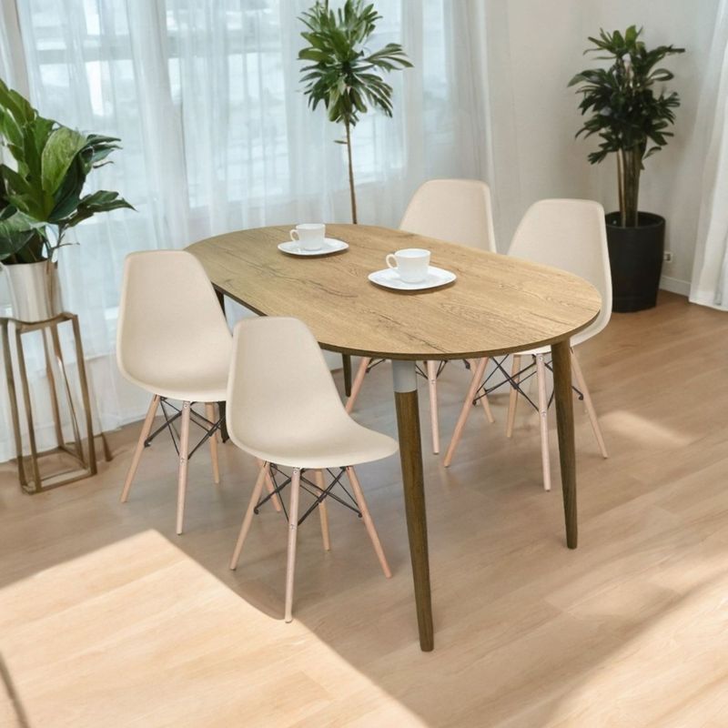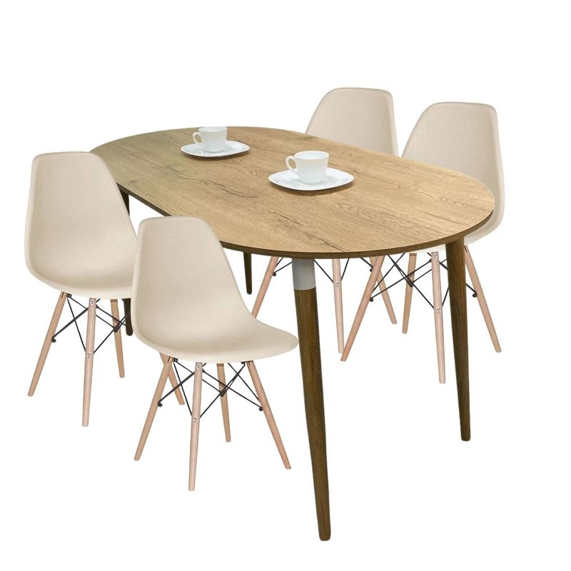 MUEBLESComedorJuego de Comedor Ovalado Zell con 4 Sillas Eames beige