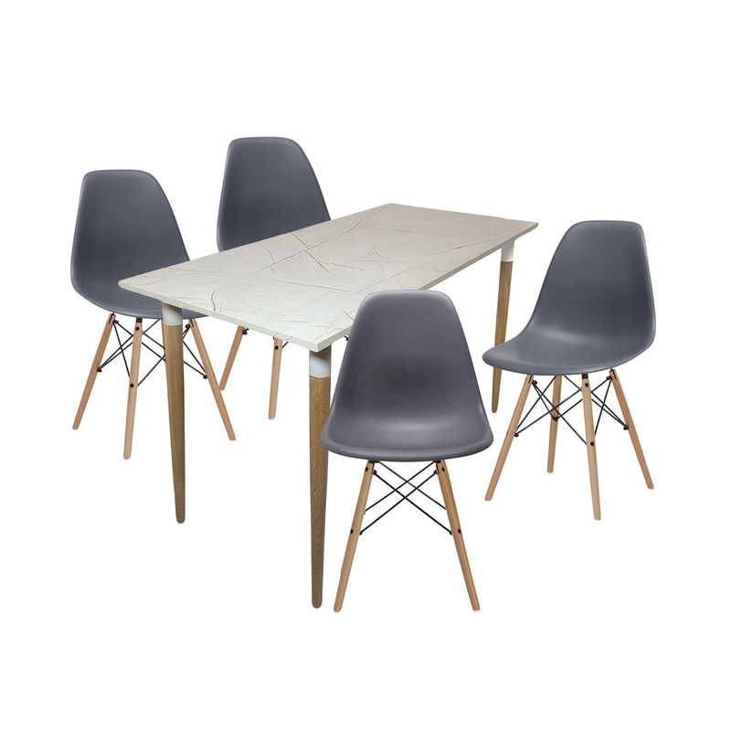 Juego de Comedor Premium Haby con 4 Sillas Eames grises