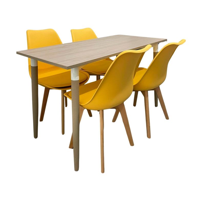 MUEBLESComedorJuego de Comedor Robledo Premium habano con 4 Sillas Milano amarillas