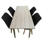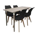 Comodidad y estilo para cada comida. Nuestros comedores son el complemento perfecto para tu hogar. Este elegante juego de comedor combina una mesa de diseño sofisticado y moderno con sillas icónicas, creando un ambiente estilizado y funcional en cualquier espacio. Mesa de Comedor: La mesa destaca por su superficie de Checua RH en color habano, que ofrece resistencia y fácil mantenimiento con un acabado pulcro, ideal para ambientes contemporáneos. Las cuatro patas de madera de roble aportan durabilidad, estabilidad y un toque cálido al diseño. Con medidas de cm, la mesa es perfecta para áreas pequeñas, como cocinas y comedores compactos, optimizando el espacio sin perder funcionalidad. Su diseño versátil y atemporal se adapta bien a cualquier espacio, desde comedores y salas hasta jardines o habitaciones auxiliares. Características importantes: Versatilidad decorativa, fácil mantenimiento, estética, elegancia y practicidad. Sillas Milano: Inspiradas en el diseño italiano, las sillas Milano son el complemento ideal para esta mesa. Fabricadas con estructura de polipropileno y asiento acolchado, estas sillas ofrecen comodidad y un estilo moderno. Las patas de madera de haya en acabado roble aportan una esencia natural y un toque sofisticado al conjunto. Las medidas de este producto son: