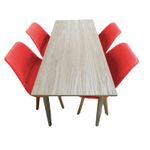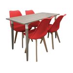 Comodidad y estilo para cada comida. Nuestros comedores son el complemento perfecto para tu hogar. Este elegante juego de comedor combina una mesa de diseño sofisticado y moderno con sillas icónicas, creando un ambiente estilizado y funcional en cualquier espacio. Mesa de Comedor: La mesa destaca por su superficie de Checua RH en color habano, que ofrece resistencia y fácil mantenimiento con un acabado pulcro, ideal para ambientes contemporáneos. Las cuatro patas de madera de roble aportan durabilidad, estabilidad y un toque cálido al diseño. Con medidas de cm, la mesa es perfecta para áreas pequeñas, como cocinas y comedores compactos, optimizando el espacio sin perder funcionalidad. Su diseño versátil y atemporal se adapta bien a cualquier espacio, desde comedores y salas hasta jardines o habitaciones auxiliares. Características importantes: Versatilidad decorativa, fácil mantenimiento, estética, elegancia y practicidad. Sillas Milano: Inspiradas en el diseño italiano, las sillas Milano son el complemento ideal para esta mesa. Fabricadas con estructura de polipropileno y asiento acolchado, estas sillas ofrecen comodidad y un estilo moderno. Las patas de madera de haya en acabado roble aportan una esencia natural y un toque sofisticado al conjunto. Las medidas de este producto son: