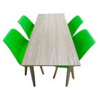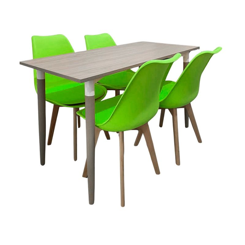 Comodidad y estilo para cada comida. Nuestros comedores son el complemento perfecto para tu hogar. Este elegante juego de comedor combina una mesa de diseño sofisticado y moderno con sillas icónicas, creando un ambiente estilizado y funcional en cualquier espacio. Mesa de Comedor: La mesa destaca por su superficie de Checua RH en color habano, que ofrece resistencia y fácil mantenimiento con un acabado pulcro, ideal para ambientes contemporáneos. Las cuatro patas de madera de roble aportan durabilidad, estabilidad y un toque cálido al diseño. Con medidas de cm, la mesa es perfecta para áreas pequeñas, como cocinas y comedores compactos, optimizando el espacio sin perder funcionalidad. Su diseño versátil y atemporal se adapta bien a cualquier espacio, desde comedores y salas hasta jardines o habitaciones auxiliares. Características importantes: Versatilidad decorativa, fácil mantenimiento, estética, elegancia y practicidad. Sillas Milano: Inspiradas en el diseño italiano, las sillas Milano son el complemento ideal para esta mesa. Fabricadas con estructura de polipropileno y asiento acolchado, estas sillas ofrecen comodidad y un estilo moderno. Las patas de madera de haya en acabado roble aportan una esencia natural y un toque sofisticado al conjunto. Las medidas de este producto son: