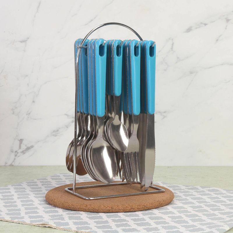 Dale un toque moderno y funcional a tu mesa con el Juego de Cubiertos Home Elements de 24 piezas, ideal para el uso diario en el hogar. Fabricados en acero inoxidable con mangos en polipropileno, ofrecen resistencia, durabilidad y un agarre cómodo. Incluye soporte metálico cromado, perfecto para mantener los cubiertos organizados y siempre a la mano, optimizando el espacio en tu cocina o comedor.