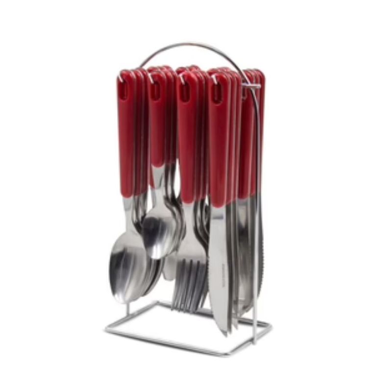 Apto para lavavajillas Si Características NORMA TECNICA: NTC 1972 Color Rojo, azul, negro Garantía 1 mes Incluye No aplica Material Acero inoxidable - Acero cromado - polipropileno Material del cubierto Acero inoxidable Modelo HQ29B Número de personas 6 Número de piezas 24
