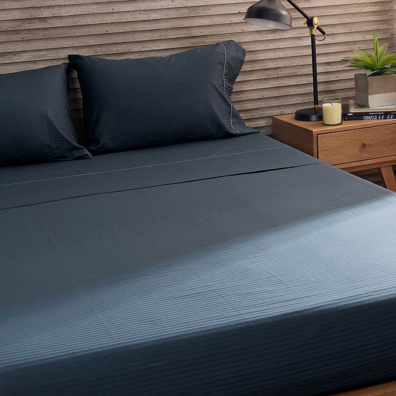 Nuestras sábanas confeccionadas en 300 hilos, 100% algodón, de la más alta calidad, ofrecen una suavidad y confort inigualables. Su tela Satin Stripe, con su distintivo patrón de rayas satinadas de 0,5 cm, no solo proporciona un acabado brillante y lujoso, sino que también asegura una durabilidad excepcional, manteniendo su apariencia y suavidad a lo largo del tiempo.