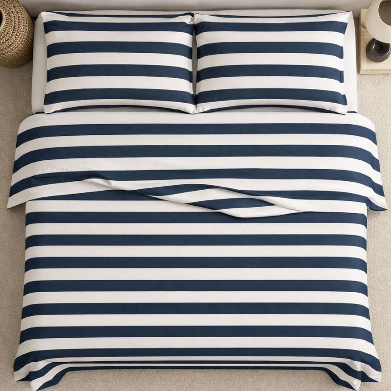 Dale a tu habitación un toque de naturaleza y serenidad con nuestro Juego Sábanas Navy Print que invitan al descanso profundo y la relajación.