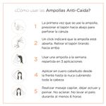 Modo de Uso | La primera vez que se use la ampolla, se deberá presionar el tapón hacia abajo para perforar la cánula. Una vez abierta («click») retirar el tapón tirando de él. SECO: 1. Presionando ligeramente, realizar 6-8 líneas paralelas desde la frente hasta la nuca cubriendo toda la cabeza. 2. Masajear el cuero cabelludo durante 2 minutos. 3. Pasado este tiempo, peinar el cabello de manera habitual. 4. Después de la aplicación, no lavar el cabello al menos durante 6 horas. HÚMEDO: 1. Realizar los pasos 1 y 2 - 2. Esperar unos 5-7 minutos antes del secado del cabello. 3. Pasado este tiempo, secar y peinar el cabello de manera habitual. |