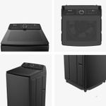 La lavadora Hisense WT5I2323DB de 23 kg combina potencia y eficiencia con su clasificación A, impulsor de eje vertical y bajo consumo de agua. Su diseño en negro con tapa de vidrio templado es moderno y resistente.
