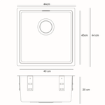 Lavaplatos premium sencillo en acero inoxidable, diseño moderno con esquinas rectas y profundidad de 20 cm que permiten mejor aprovechamiento del interior del lavaplatos; cuenta con radios de fácil acceso para la limpieza y acabado pulido satinado que permite lograr un brillo que perdura en el tiempo.