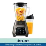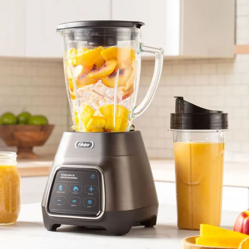 Licuadora Oster® con Motor de Tecnología Reversible y pantalla tactil, 2 programas automáticos para smoothies y salsas.Su potente motor de 700 watts hace girar las cuchillas DE 6 aspas en ambas direcciones para procesar completamente todos los ingredientes. 3 velocidades manuales y una función de “Pulso”. Incluye un vaso Blend-N-Go portátil de 750 ml de Tritan™ que brinda todos los beneficios de un vaso de vidrio en un material resistente, inodoro y no tóxico.